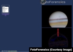 Перевірка за допомогою сервісу Fotoforensics, який дозволяє розпізнавати фальшиві знімки, показала, що перед публікацією фото було зменшене як мінімум на половину від свого оригінального розміру й містить елементи домальовувань. Тобто має ознаки підробки.