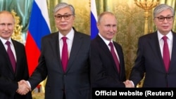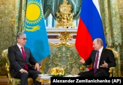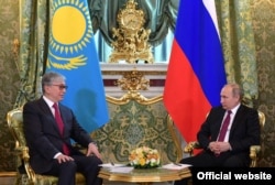 Токаєв на зустрічі з президентом Росії Володимиром Путіним у Москві під час першого закордонного візиту у ролі президента Казахстану.