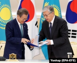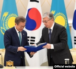 Наприкінці квітня президент Південної Кореї Мун Чже Ін відвідав Казахстан. Агентство European Pressphoto опублікувало знімок із цієї зустрічі.