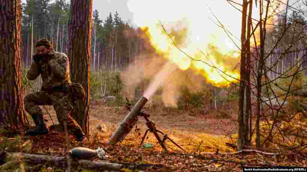 Кореспондент Радіо Свобода побував на півночі Київської області і побачив роботу мінометного розрахунку ЗСУ.