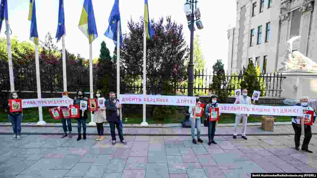 Родичі незаконно утримуваних у в'язницях Росії та анексованого Криму українців 21 травня провели акцію, вимагаючи подробиць про можливий обмін між Росією та Україною. Акція під назвою «Пане президенте, поговоріть з нами» зібрала під Офісом президента України півтора десятка людей. У руках вони тримали фотографії українців, які опинилися за ґратами, а також банер з написом «Пане президенте! Досить обіцянок – дійте! Звільніть наших родичів!».