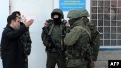 «Зелений чоловічок» біля військової частини в Сімферополі